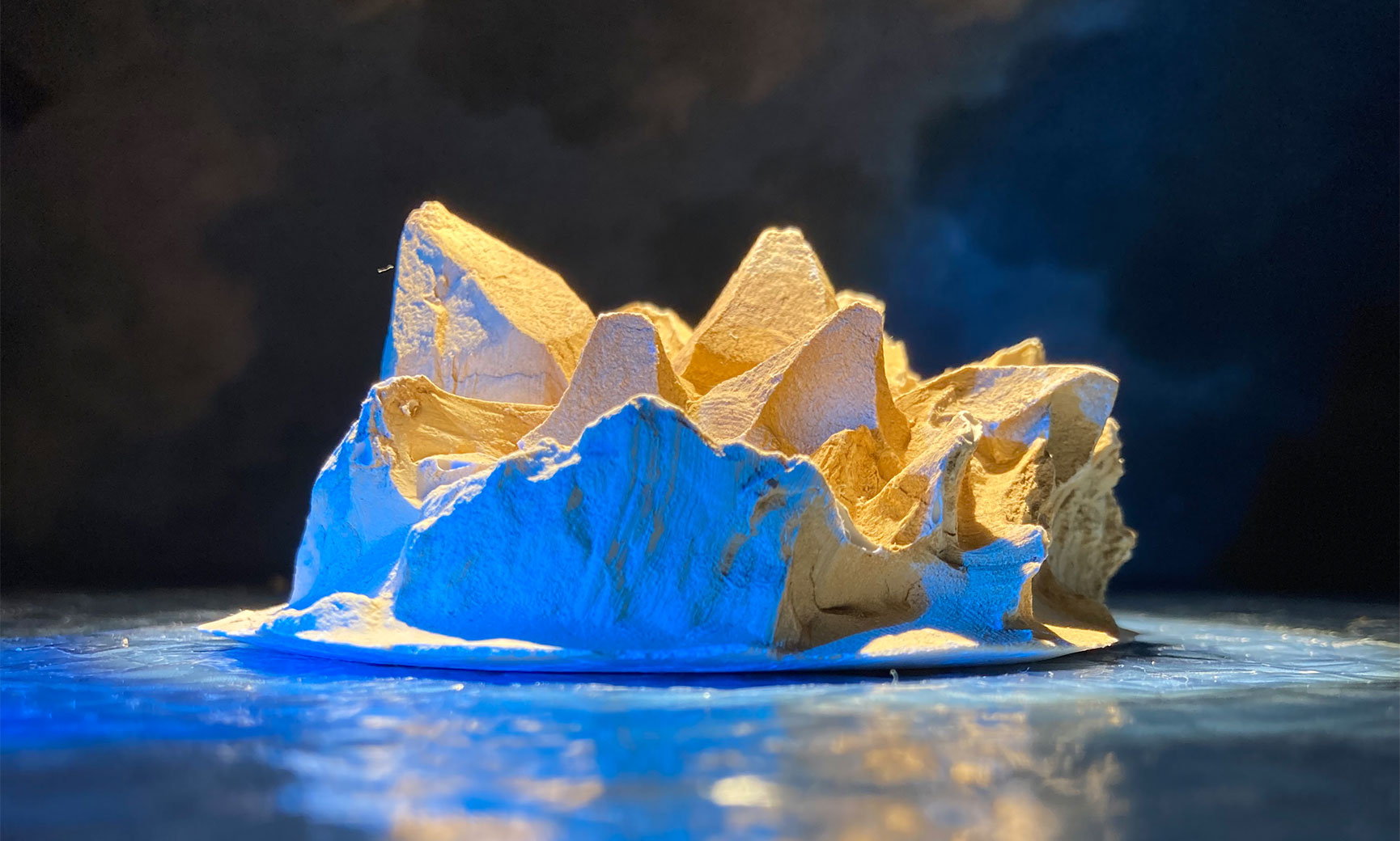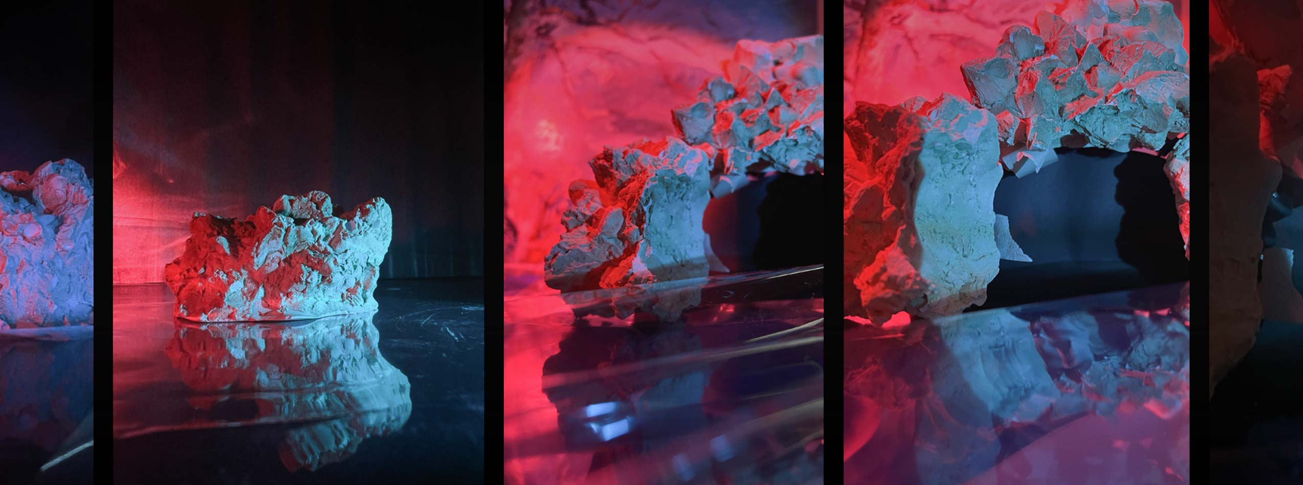 Die 3. Klassen haben in BG zunächst Gesteinsformationen aus Gips hergestellt, diese dann fotografisch inszeniert und später mit Photoshop bearbeitet.