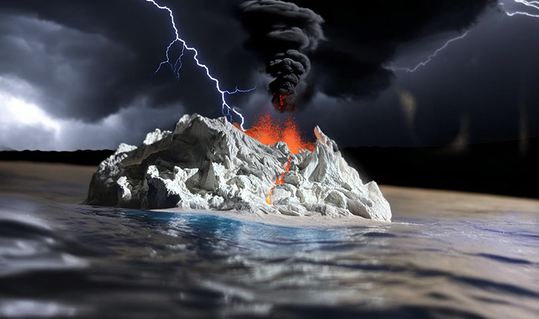 Die KI hat bemerkt, dass etwas Leuchtendes im unteren Teil der Rauchwolke, die ich eingefügt habe, sein muss und hat dann den gleichen orangen Ton des Vulkans auch bei der Wolke eingebracht. KI-Bilder bringen viele Chancen, aber je mehr Bilder mithilfe der KI entstehen, desto weniger können wir sagen: «Das habe ich gemacht!»