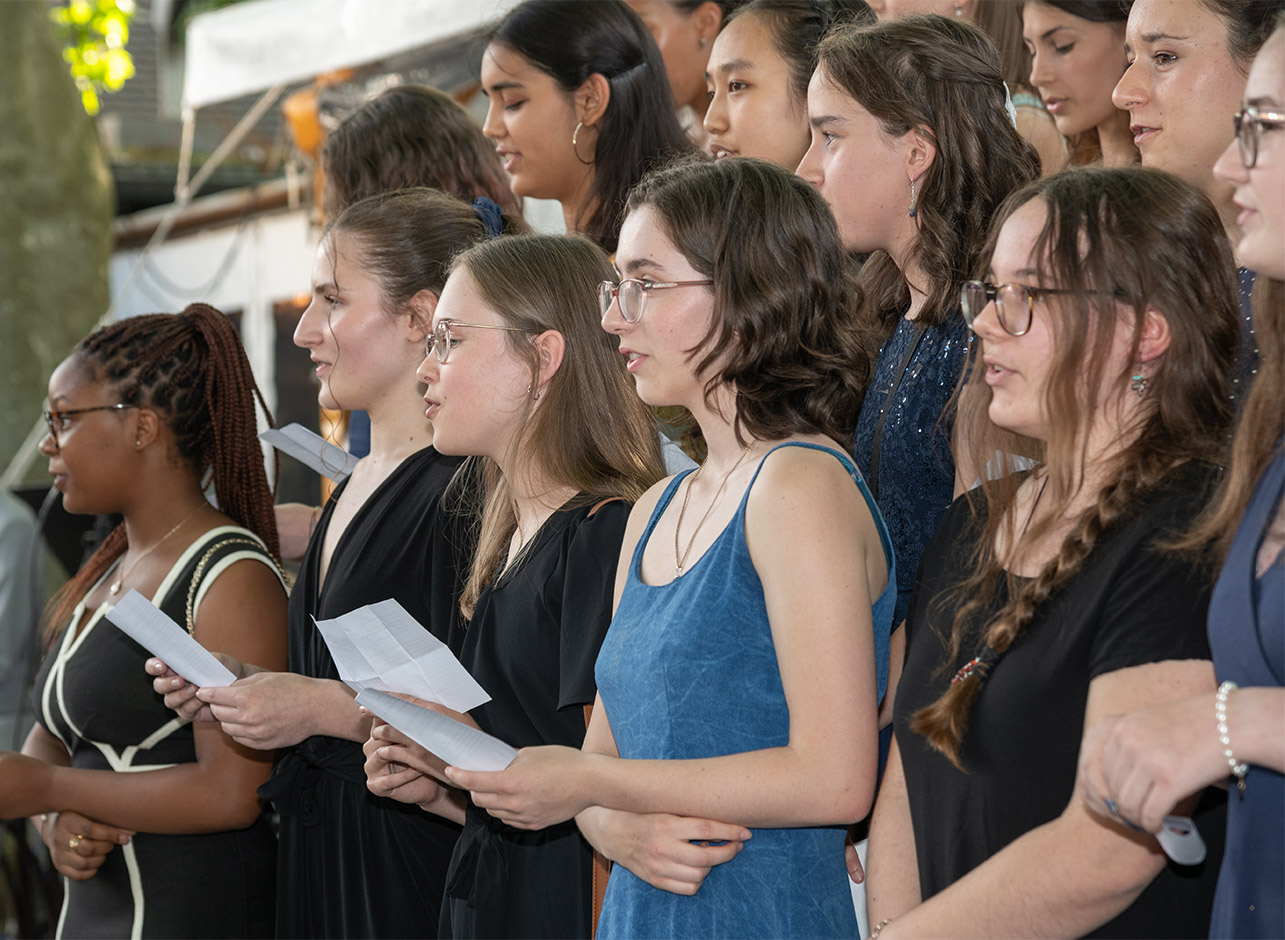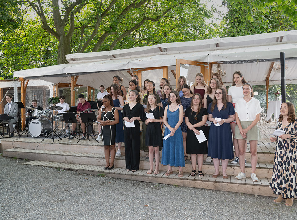 Ein weiteres Highlight war der gemeinsame Auftritt von Chor und Band beim Sommerfest 2023. Mit gesanglicher Unterstützung aller KZI-Angehörigen haben die beiden Ensembles zum Abschied vom Gründungsrektor Herrn Dr. Urs Bamert eine neugetextete Version von «Let It Be» der Beatles zum Besten gegeben.