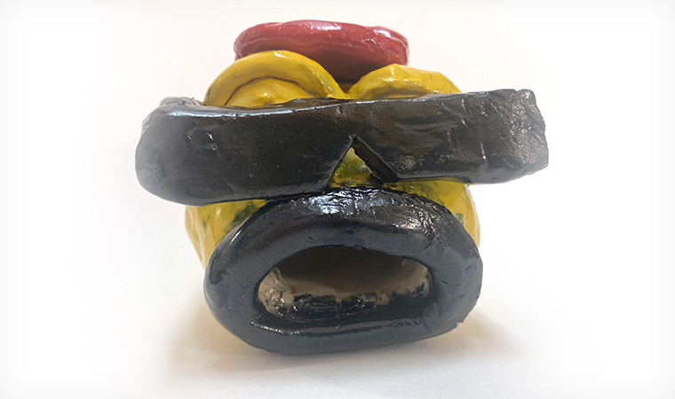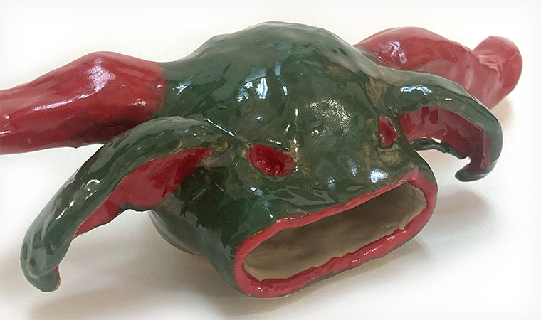 Aus einer Handvoll Ton wurde ein Hohlkörper geformt und zu einem menschlichen oder tierischen Antlitz weiterentwickelt.