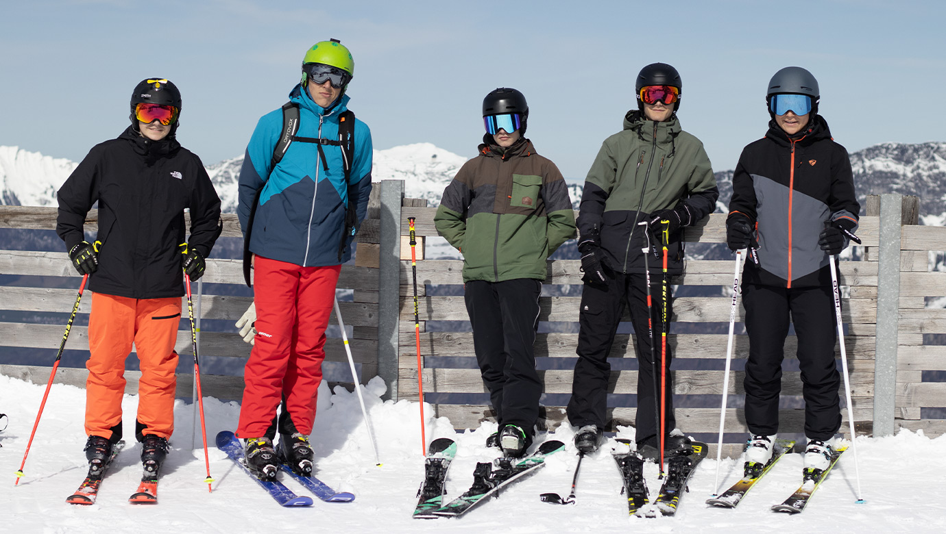 Bereit für die nächste Abfahrt. Wer verbirgt sich wohl unter Skibrille und Helm?