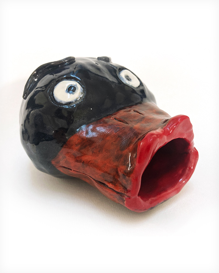 Aus einer Handvoll Ton wurde ein Hohlkörper geformt und zu einem menschlichen oder tierischen Antlitz weiterentwickelt.